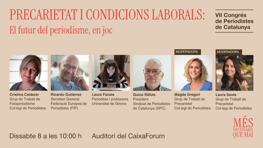 Les condicions laborals dels periodistes s’han deteriorat progressivament, amb exigències creixents de polivalència, flexibilitat i producció constant. Aquesta taula rodona vol obrir un debat urgent sobre la precarietat estructural que afecta la professió, l’impacte de l’intrusisme i la pèrdua de referents informatius en benefici del soroll i el clic fàcil. També posarem el focus en el context europeu i analitzarem si aquesta tendència és compartida arreu. Quin model de periodisme volem i com el podem sostenir dignament? (taula rodona)
