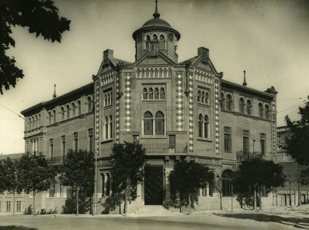 L’edifici de la Casa de la Premsa és obra de l’arquitecte Pere Domènech i Roura, fill de Lluís Domènech i Montaner. Es va construir per allotjar el centre de premsa de l’exposició internacional de 1929. Periodistes vinguts d’arreu van poder treballar en aquest edifici que té força semblances amb l’Hospital de Sant Pau, obra de Domènech i Montaner.